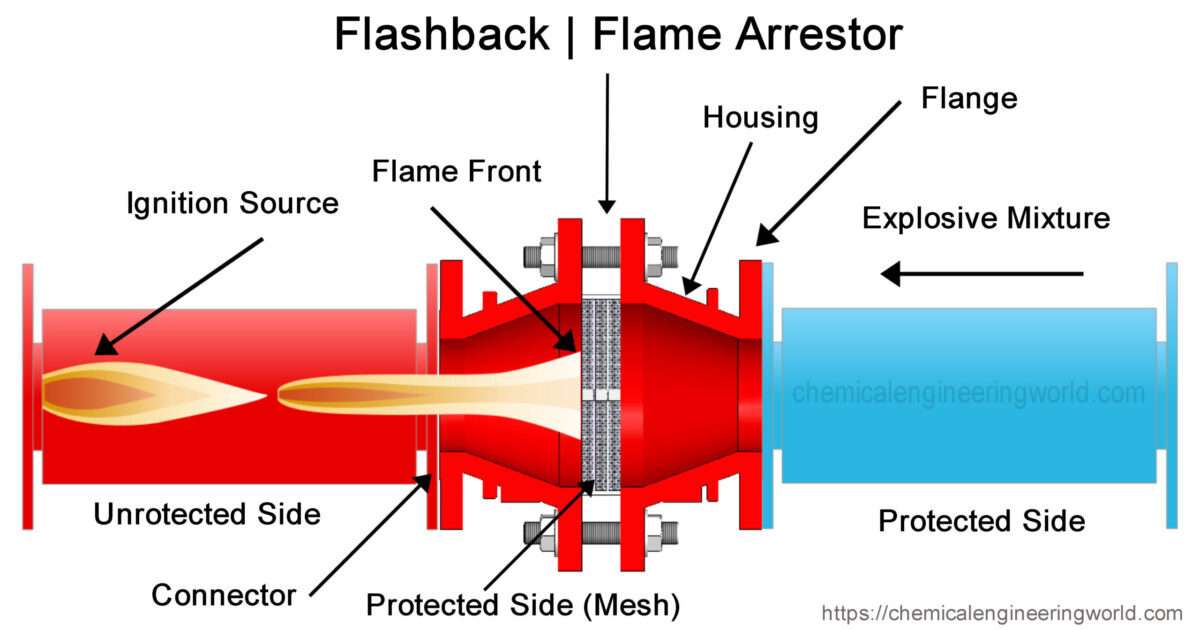 “Flashback | Flame Arrestor Working and …” from chemicalengineeringworld.com where it provides biogas compression equipment safety and image is used with no modifications.